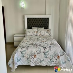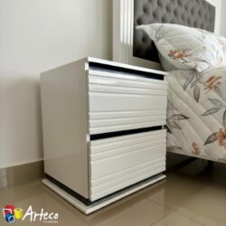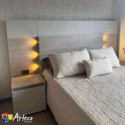 - La alcoba está fabricada en madera seca e inmunizada, con un diseño cálido y contemporáneo. El cabecero combina madera natural con acabados en chapilla y poliuretano, e incorpora luces laterales integradas que aportan calidez y funcionalidad al espacio. Incluye mesas de noche con sistema de 2 gavetas, una de ellas oculta, lo que les da una apariencia minimalista de una…