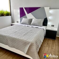 - Esta alcoba está elaborada en madera seca e inmunizada, lo que garantiza resistencia y calidad. Su cabecero presenta un diseño tapizado, con acabados poliuretano, que combina elegancia y confort en una sola pieza. Incluye mesas de noche de 2 gavetas, fabricadas en madera con acabado en pintura poliuretano, que complementan el conjunto de forma armoniosa. Medidas disponibles: Doble: 1.40 ×…